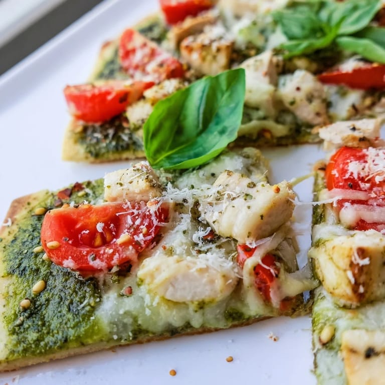 Merken Experience a vibrant twist on a classic Italian favorite with this Chicken Pesto Pizza. Featuring a crisp, thin crust topped with fragrant basil pesto, tender seasoned chicken, creamy mozzarella, and juicy tomato slices, this dish is as visually stunning as it is delicious. Perfect for a quick weeknight dinner, it brings gourmet flavors to your table in just 35 minutes.