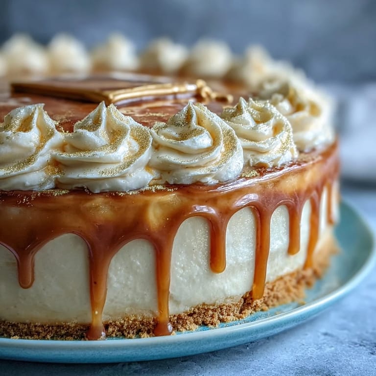 - 9. For the gold drip, heat heavy cream until steaming, then pour over white chocolate chips. Let sit 2 minutes, then stir until smooth. Cool until slightly thickened.