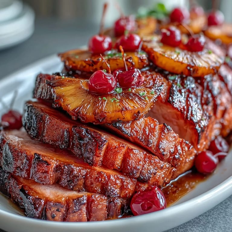 Dieses Rezept wurde zum festen Bestandteil meines Osterdinners, nachdem ich beim letzten Familienfest einen liebevollen Wettstreit mit meinem Onkel hatte: Wer kann dem Schinken die schönste Ananas-Krone aufsetzen? Als wir gemeinsam Garnieren, entstand ein ganzes Gespräch über alte Küchengeheimnisse und das richtige Timing beim Bepinseln. Am Ende lachten wir laut und jeder wusste: Der Schinken wurde im Kreis der Familie gefeiert – mit Lob und einem Hauch von Stolz, weil das Ergebnis wirklich glänzte.