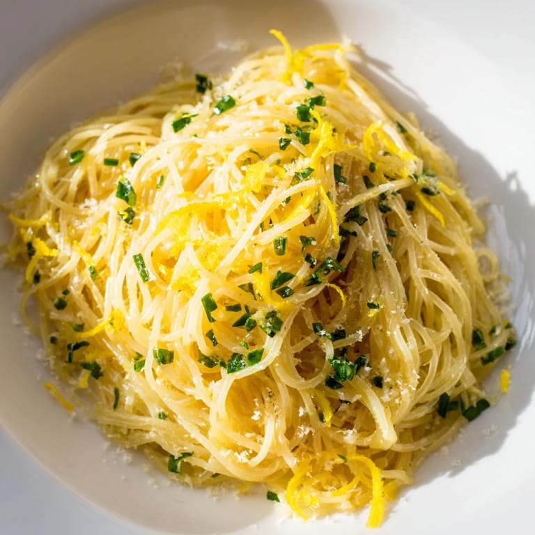 Merken There's something almost meditative about the way a single lemon can transform the simplest pasta into something that feels like you've unlocked a kitchen secret. I discovered this dish on a Sunday afternoon when I had nothing but capellini, a couple of lemons, and butter in my kitchen, and somehow those three things created something so bright and silky that I've made it at least once a week since. The beauty of it is how the sauce clings to those delicate strands without needing cream or any fussy technique.
