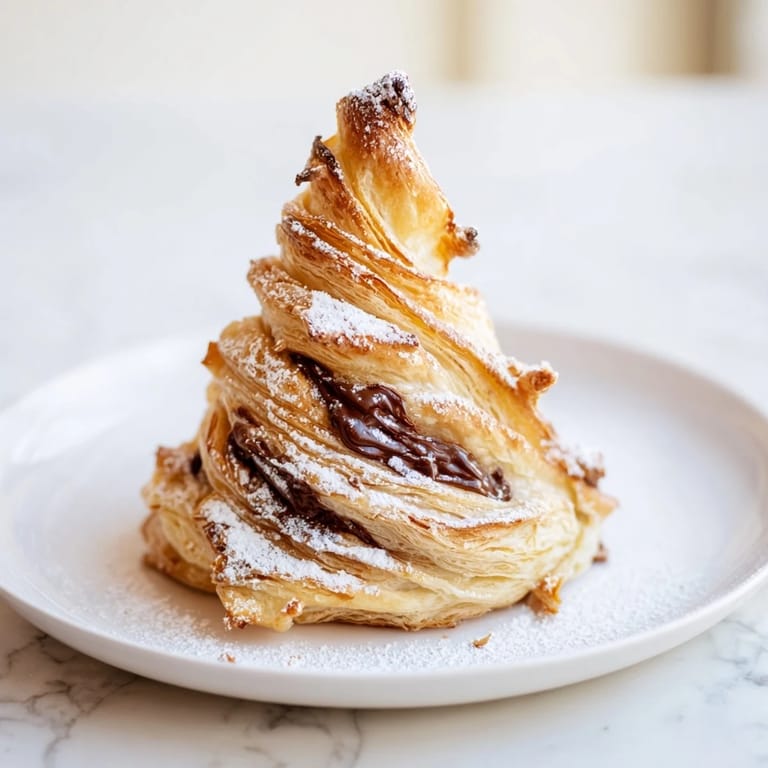 Eines Tages hatte ich keine Nutella, aber eine wunderbare Glas Schokoladencreme mit Mandeln, und es war mindestens genauso köstlich. Sie können mit Erdnussbutter, Marmelade, sogar Spekulatius-Creme experimentieren – jede Variation erzählt ihre eigene Geschichte. Gehackte Haselnüsse zwischen den Schichten geben extra Crunch, und wenn Sie es süßer mögen, streuen Sie Zucker zwischen die Teigblätter, bevor Sie die Nutella hinzufügen.