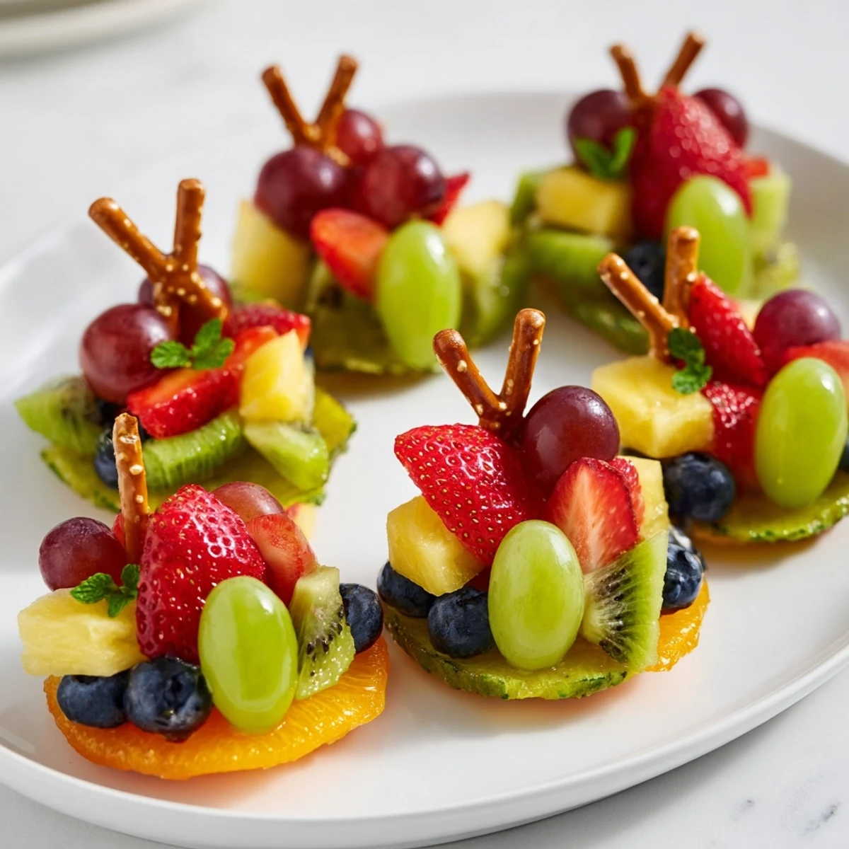 - Frische Früchte: 1 Tasse grüne Trauben, gewaschen und halbiert, 1 Tasse rote Trauben, gewaschen und halbiert, 1 Tasse Kiwi, geschält und in Scheiben geschnitten, 1 Tasse Erdbeeren, entstielt und halbiert, 1 Tasse Ananas, in kleine Stücke geschnitten, 1 Tasse Blaubeeren, 1 Orange, geschält und in Segmente geteilt
