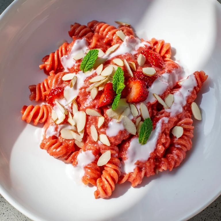 Merken Ich war auf der Suche nach etwas Neuem für einen heißen Sommernachmittag, als ich aus reiner Laune Erdbeeren und Joghurt mit warmen Nudeln kombinierte – und ich war sofort verliebt. Es war kein geplantes Rezept, sondern eher ein Experiment aus dem, was der Kühlschrank hergab. Die erste Gabel war überraschend erfolgreich, und seitdem kehre ich immer wieder zu diesem Gericht zurück, wenn mir nach etwas Frischem und gleichzeitig Tröstendem ist.