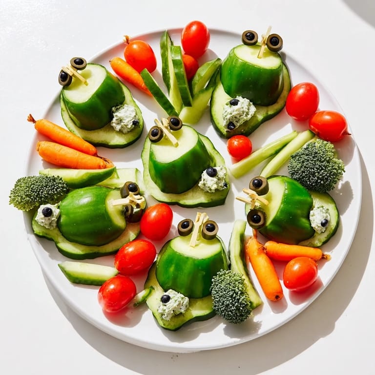 Merken Eine verspielte, charmante Platte mit frischem Gemüse, das kunstvoll angeordnet ist, um Schildkröten zu ähneln – perfekt für Partys, Kinder oder um jedem Vorspeisenteller Spaß zu verleihen. Serviert mit einem cremigen Kräuterdip.