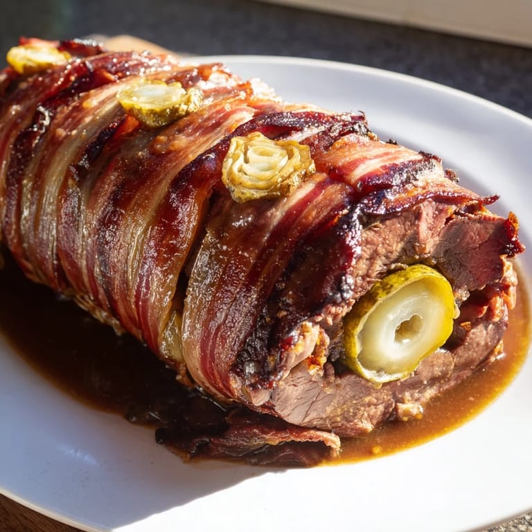 Merken Zarte Rinderrouladen, gefüllt mit einer herzhaften Mischung, langsam geschmort und serviert mit einer einzigartigen Soße aus Goji-Beeren für ein gemütliches und geschmackvolles Hauptgericht.