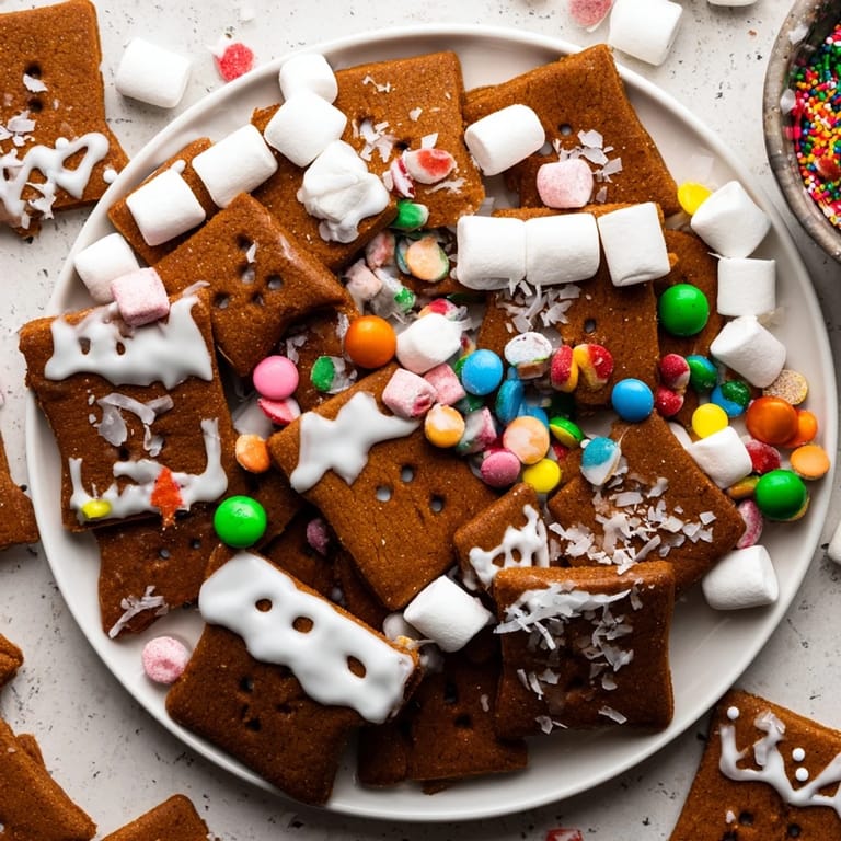 - Dekorationen & Süßigkeiten: 1 Tasse Mini-Marshmallows, 1 Tasse gemischte Gummibonbons, 1 Tasse Zuckerstangen, zerstoßen oder mini ganz, 1 Tasse Schokoladenknöpfe oder M&Ms, 1 Tasse Pfefferminzbonbons, 1 Tasse Jelly Beans, 1/2 Tasse Brezelstäbchen, verschiedene Streusel, essbarer Glitzer (optional)